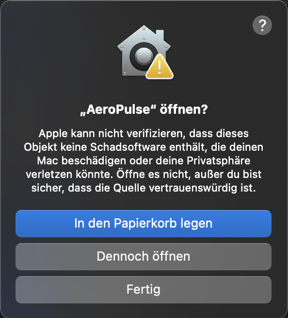 Danach öffnet sich nochmals ein Fenster mit der Frage, ob man es wirklich öffnen möchte. Da klickt man dann nochmal auf “Dennoch öffnen”, gibt sein Passwort ein und die Software kann benutzt werden.